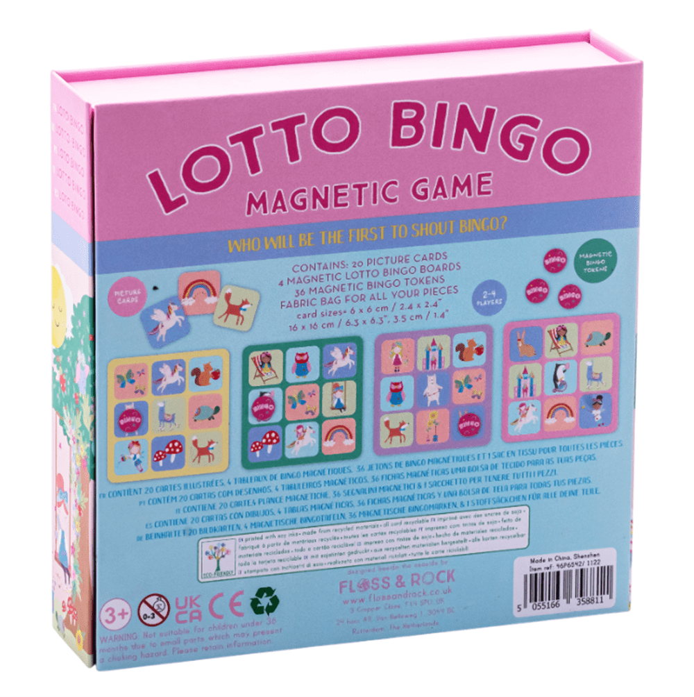 Bingo şans oyunumuzun parçaları mıknatıslıdır. Ve bu özellik sayesinde oyunu restoranda seyahatte ve dış ortamda oynamak için mükemmel kılar. Oyunumuz 4 mıknatıslı resimli karteladan, 20 resimli karttan , 36 mıknatıslı bingo kartlarından ve tümünü saklamak için kullanılan kumaş bir keseden oluşur. Ayrıcı tümünü saklayabileceğiniz mıknatıs kapaklı yüksek kaliteli bir kutusu mevcuttur. İlk BİNGO diyen oyunu kazanır !