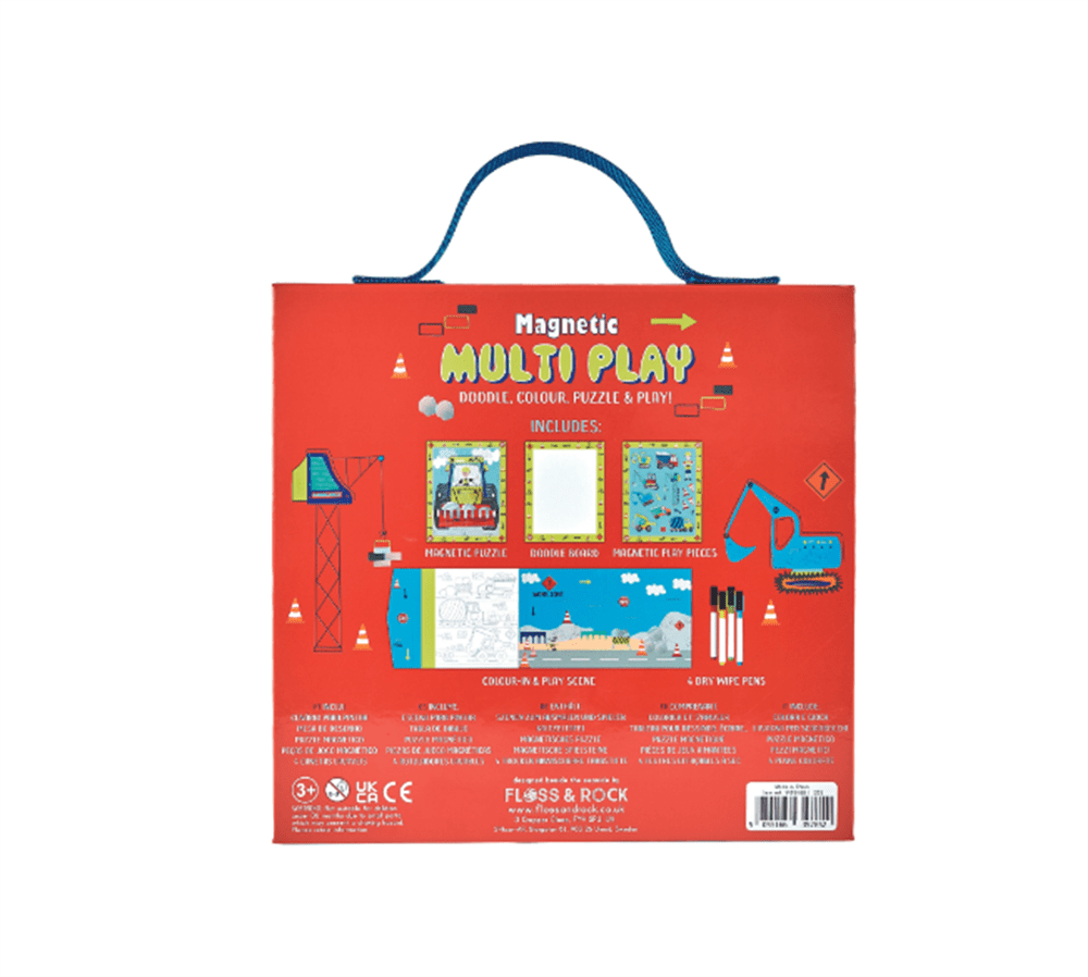 Karalama kartı, boyama, yapboz ve oyun! Floss & Rock Mıknatıslı Oyun Setimiz küçüklerimizi saatlerce eğlendirmek için 4 farklı aktivite içerir. Floss & Rock çoklu oyun setimiz; her biri 20 parçalı yapboz, 4 renkte silinebilir kalem ve silgisi, pop-out oyun parçaları, bir karalama ve bir boyama kartından oluşmaktadır. Ayrıca Floss & Rock çoklu oyun setinin tüm parçaları mıknatıslıdır, bu sayede istediğiniz yerde oyunları oynarken parçalarını kaybetmezsiniz. Oyunları oynarken açılarak düz formda kullanırken kutuyu katlayarak kapattığınızda her şeyin içine sığabildiği dekoratif bir kutu ortaya çıkmaktadır. Tekrar tekrar kullanabileceğiniz kutusunun taşıma kolonu sayesinde oyunu seyahatte, piknikte veya gezerken yanınıza alabilirsiniz.