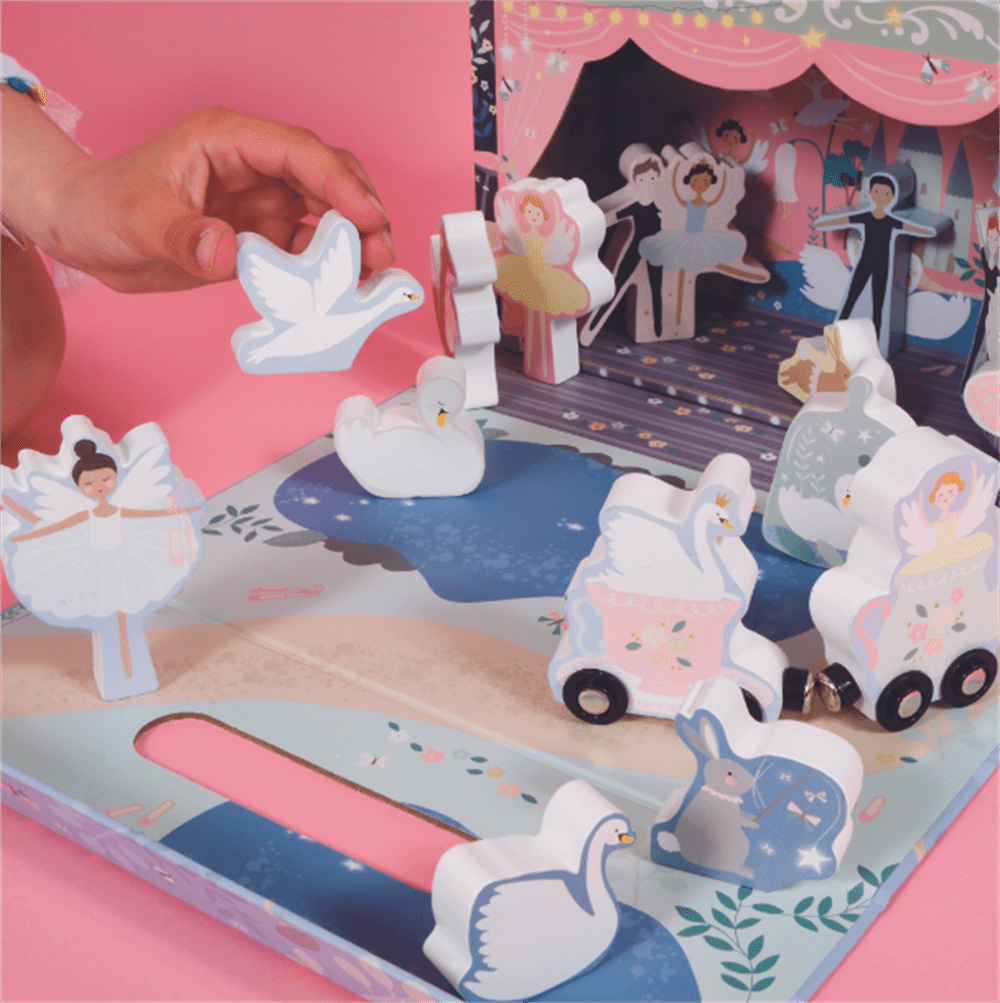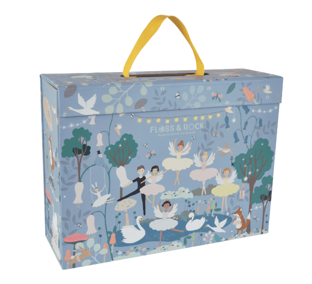 Floss & Rock Enchanted Ahşap Figürlü Oyun Kutumuz istediğiniz yere taşımak için mükemmeldir. Yeniden kullanılabilir Floss & Rock kutusu, büyük bir sahneyi ve büyülü bir gölü ortaya çıkaracak şekilde açılır ve hatta üst kapak açılarak 'sahne arkasına' da ulaşılabilir. Büyülü orman fonu ve çift taraflı 15 ahşap karakterle çocuklar hayal güçlerini kullanabilecekler. Oyun zamanında balerinler, dansçılar, kuğular ve dost canlısı orman halkı saatlerce yaratıcı oyunlar için bir araya gelirler. Bir araya gelip tekerlekler üzerinde dans edebilen demliklerin içinde sihirli kuğular bulacaksınız! Gösteri bittiğinde, ahşap karakterlerinizi kullanışlı büzgülü bez çantaya koyun, kutunuzu kapatın ve bir sonraki maceranızı hayal edin!